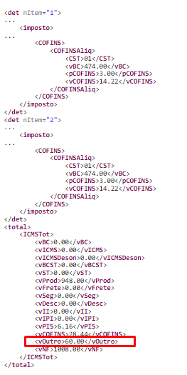 Rejeição 604: Total do vOutro difere do somatório dos itens