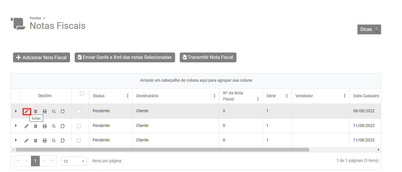 Pesquise pelo número da NF-e e edite a mesma.