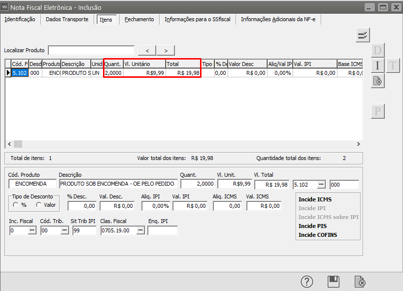 Foi emitida uma NF-e / NFC-e com Valor Unitário de Tributação igual à R$ 9,99, com Quantidade Tributável igual à 2 e o Valor do Produto foi calculado em R$ 20,00. Sendo o valor correto dessa multiplicação R$ 19,98, a NF-e / NFC-e será rejeitada pelo motivo 630.