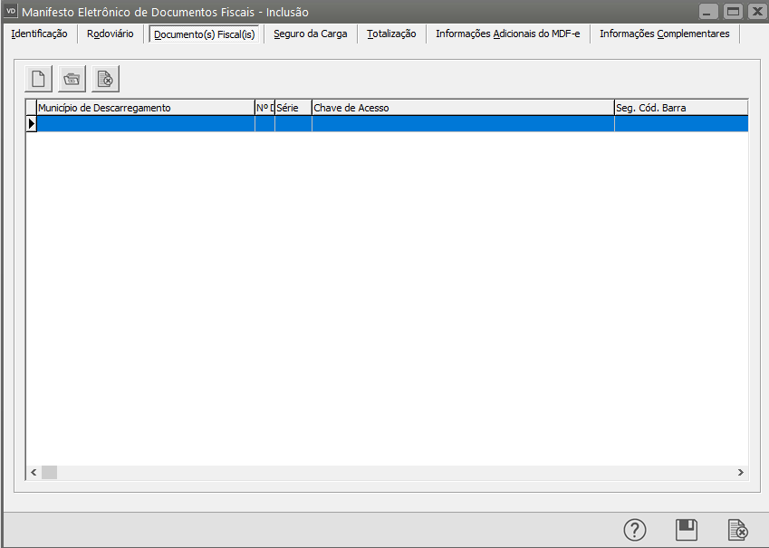 Acesse o menu Movimentação>MDF-e>Manutenção, pesquise pelo Manifesto e clique na seta Avança, em seguida edite o MDF-e e acesse a aba Documentos Fiscais