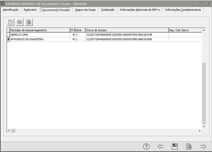 Acesse o menu Movimentação>MDF-e>Manutenção, pesquise pelo Manifesto rejeitado e clique na seta Avança, em seguida edite o Manifesto e acesse a aba Documento Fiscal.