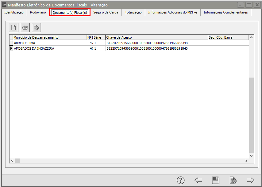 Acesse o menu Movimentação>MDF-e>Manutenção, pesquise pelo Manifesto rejeitado e clique na seta avança, em seguida edite o Manifesto e acesse a aba Documentos Fiscais, verifique a chave de acesso informada para a Nota Fiscal Eletrônica.