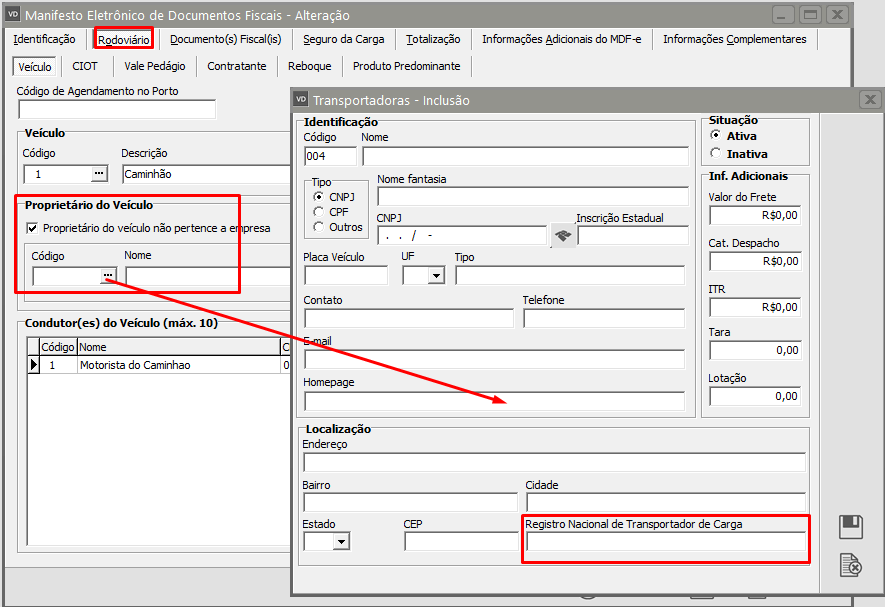 Acesse novamente o cadastro do MDF-e e recarregue a informação do campo proprietário do veículo, para que as informações sejam atualizadas.