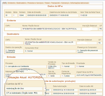 Caso você consulte a NF-e na Sefaz e a mesma esteja com Status Autorização de Uso