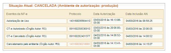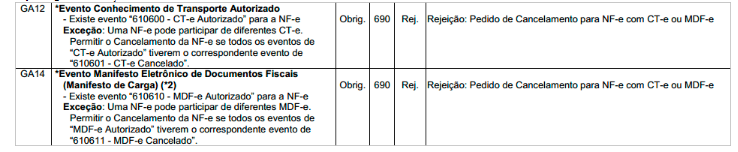 ... Rejeição 690: Pedido de Cancelamento para NF-e com CT-e ou MDF-e