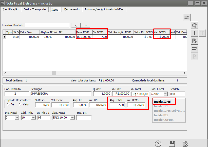 5 - Verificar se na aba Item da NF-e está informada a alíquota do ICMS