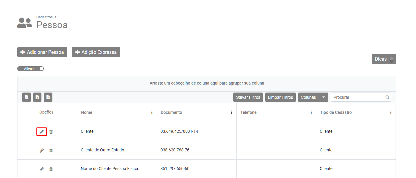 Pesquise pelo Cliente e faça a edição de seu cadastro.