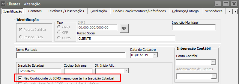 Verifique no menu Manutenção>cliente>Manutenção, se o destinatário da NF-e está cadastrado como não Contribuinte