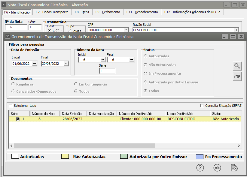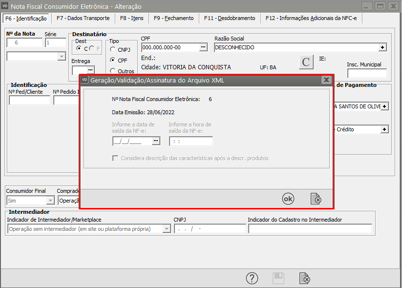 Se todas as informações estiverem corretamente cadastradas, a NFC-e será assinada e validada com sucesso.