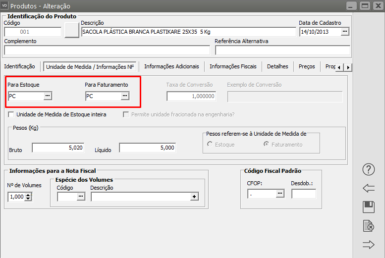 Corrija a informação e salve o cadastro do produto.