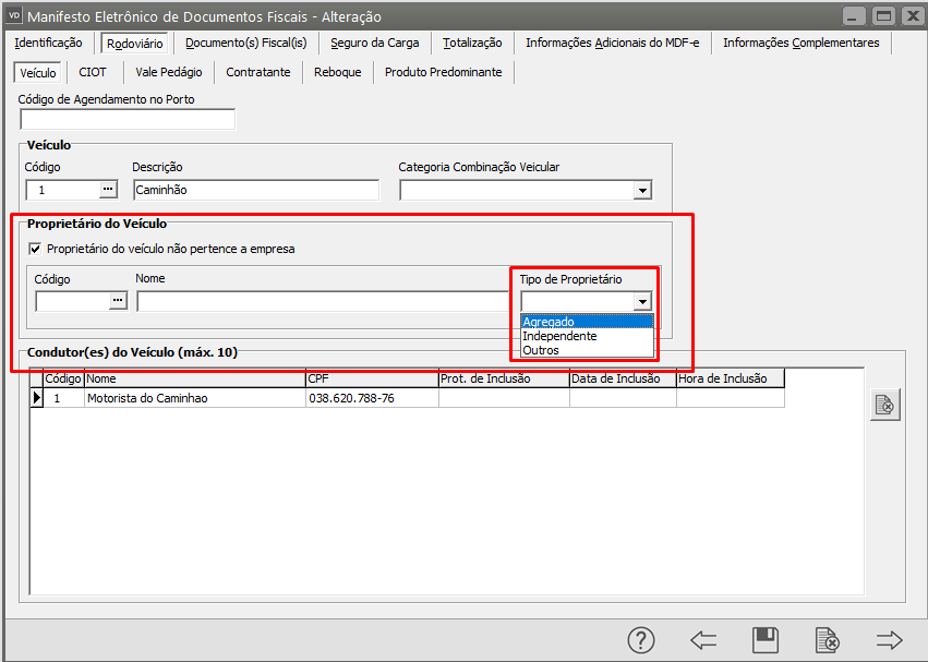Corrija a informação ou excluindo a informação do proprietário do veículo ou do tipo de transportador (verifique qual delas é a correta), salve o MDF-e e faça novamente o envio para a SEFAZ.