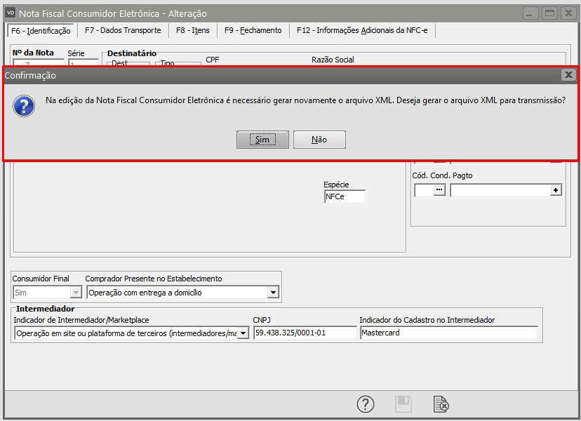 O Sistema irá questionar se você deseja gerar um novo XML para Transmissão, clique em SIM.