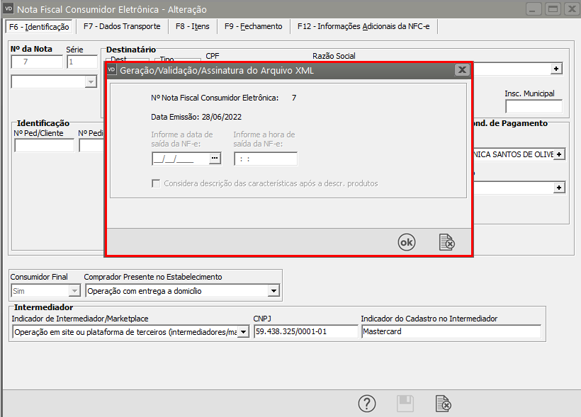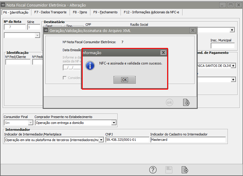 Se todas as informações estiverem corretamente cadastradas a NFC-e será assinada e validada com sucesso.