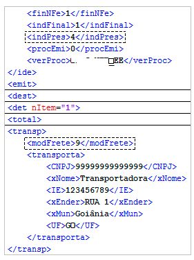 Sempre que houver entrega em domicílio os dados da transportadora e do destinatário são necessários. Se não informados serão ocasionadas outras rejeições.