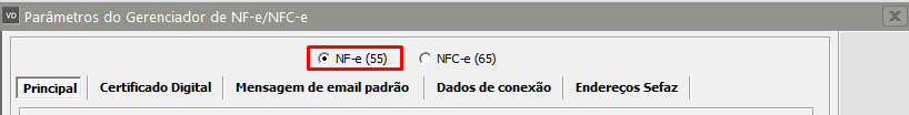 1) Para NF-e, defina na parte superior central da tela NF-e(55)