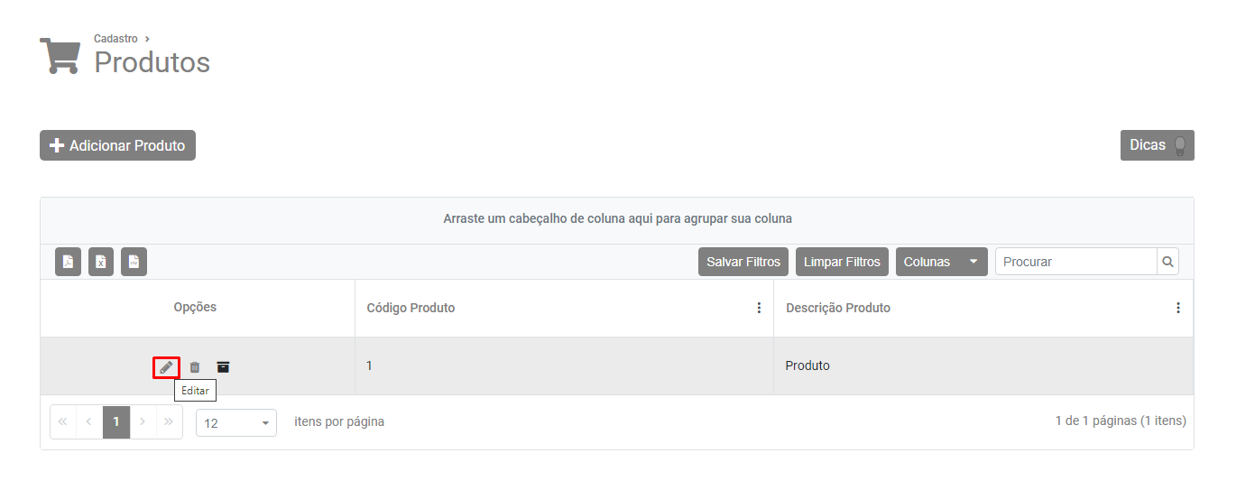 Pesquise pelo Produto e faça a edição do mesmo