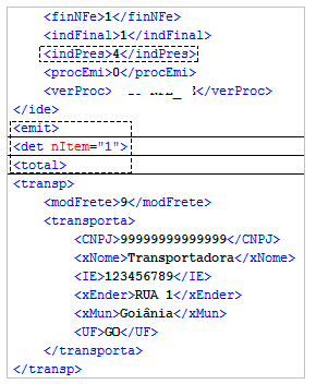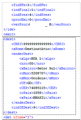 Deve-se informar os dados do destinatário. Sempre que houver entrega em domicílio, é obrigado informar os dados do destinatário da NFC-e. A NFC-e deverá ter o seu XML corrigido como no exemplo abaixo: