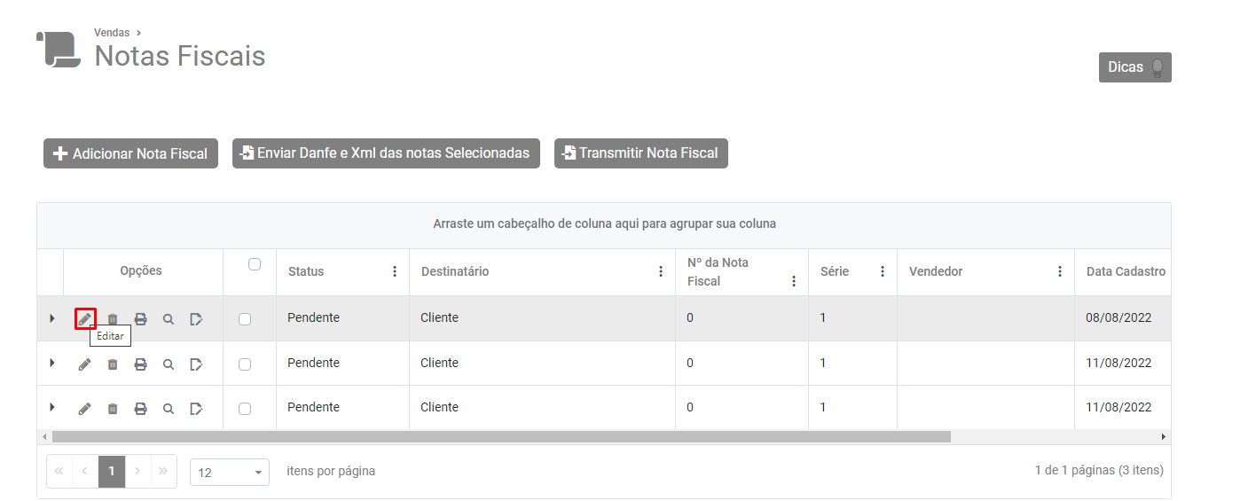 Pesquise e edite a nota fiscal eletrônica que apresentou a rejeição na Sefaz e em seguida salve a nota novamente (para que as informações sejam atualizadas)