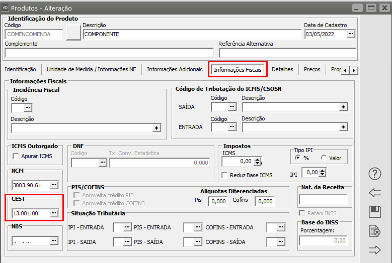 Descrição: Operação com ICMS-ST sem informação do CEST