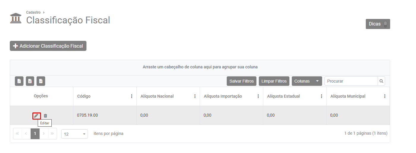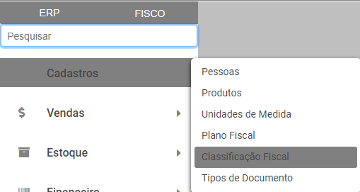 Verifique o menu Cadastros>Classificação Fiscal
