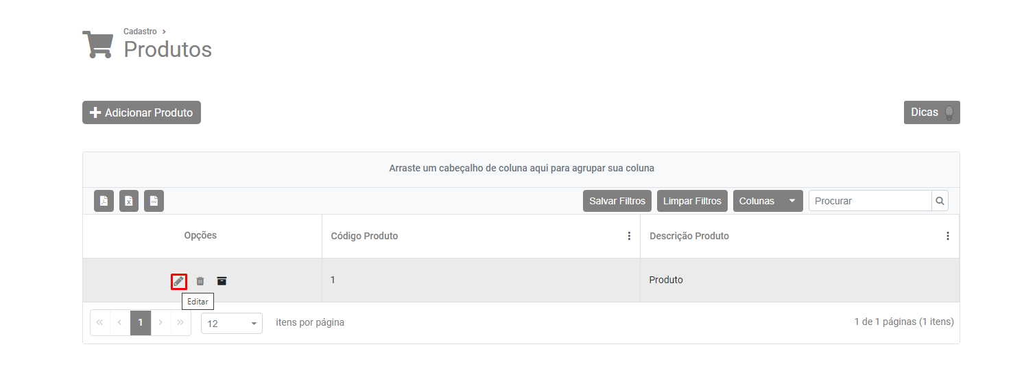 Pesquise e edite o produto constante na NFe