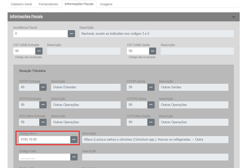 Acesse a aba Informações Fiscais e busque novamente pelo NCM que você alterou.