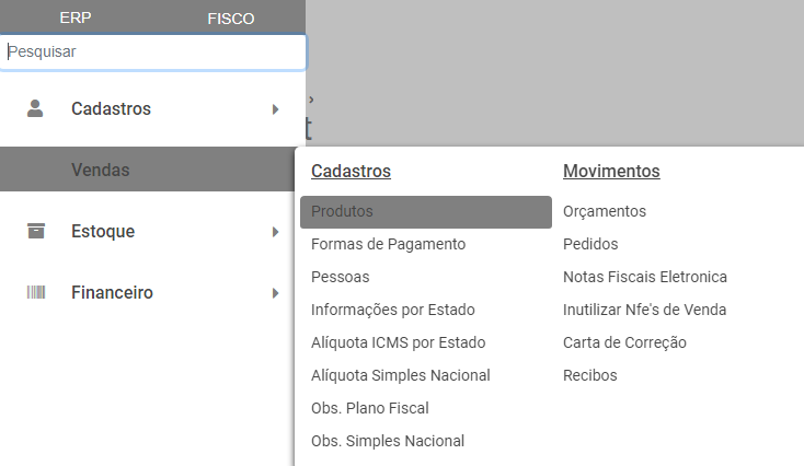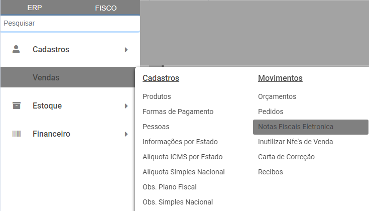 Em seguida acesse o menu Vendas>Nota Fiscal Eletrônica