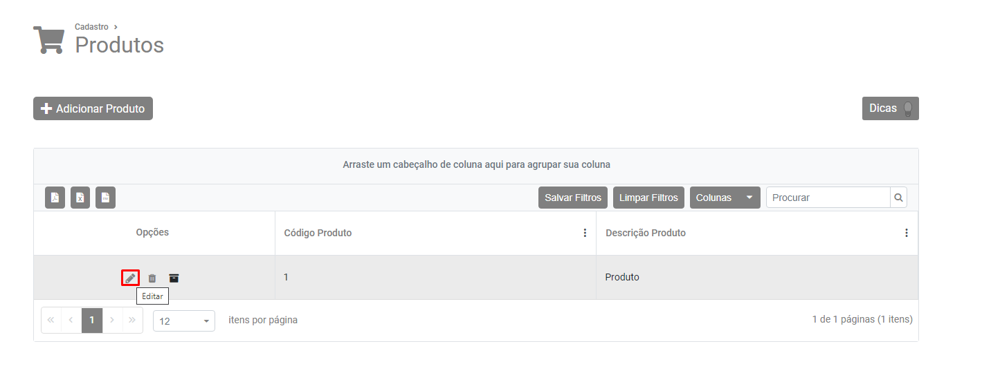 Pesquise pelo Produto e faça a edição de seu cadastro