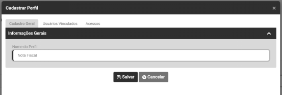 Um Perfil é um cadastro contendo todos os acessos que o usuário terá (Módulos, Funções e etc), podendo vincular vários usuários no mesmo perfil.