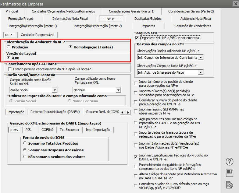 Se a versão estiver incorreta, faça a correção e salve os Parâmetros Adicionais da Empresa, em seguida, salve novamente a NF-e, gere um novo XML e envie para a Sefaz.