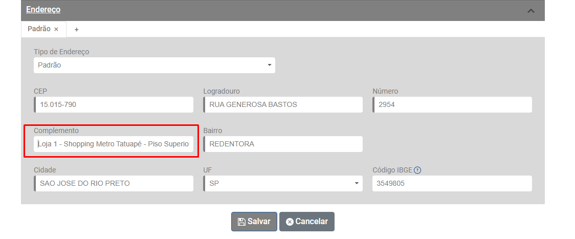 Acessar o cadastro do cliente e resumir a informação constante do campo Complemento do endereço do cliente.