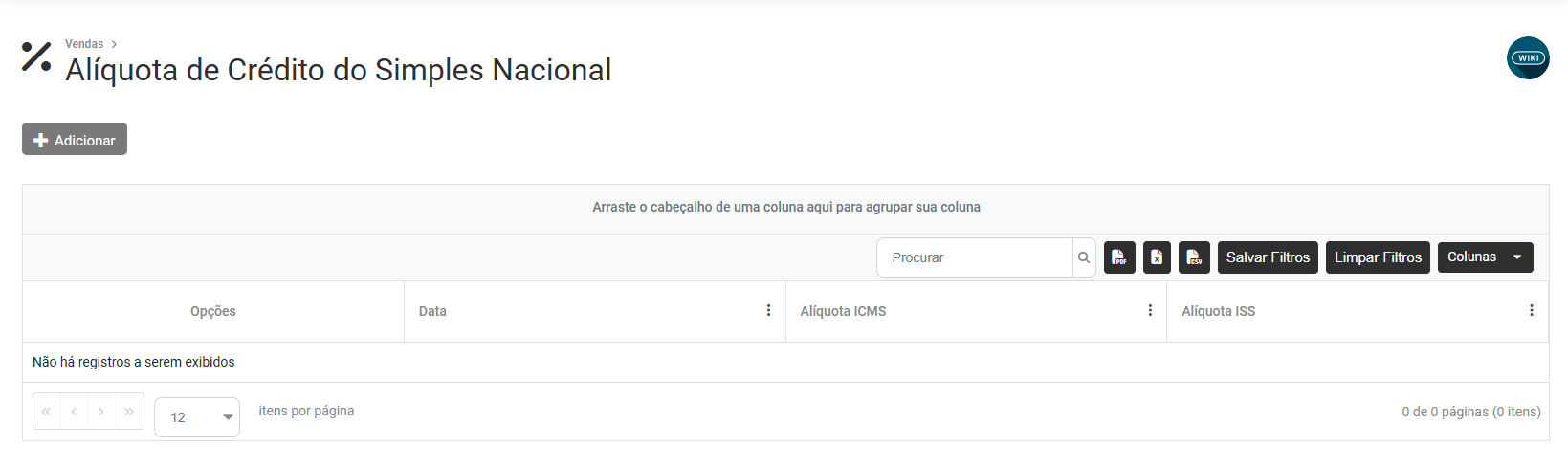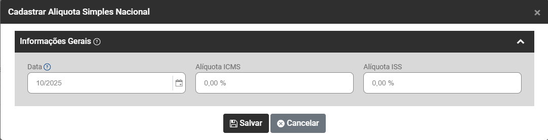 Cadastro da Alíquota de Crédito do Simples Nacional