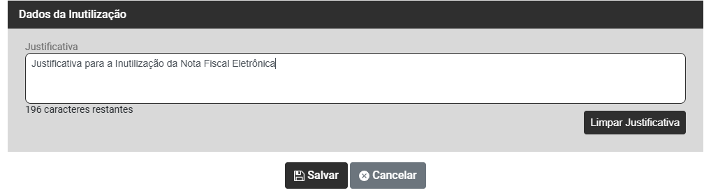 - Defina/Digite a Justificativa para a Inutilização da Nota Fiscal Eletrônica (no mínimo 15 caracteres)