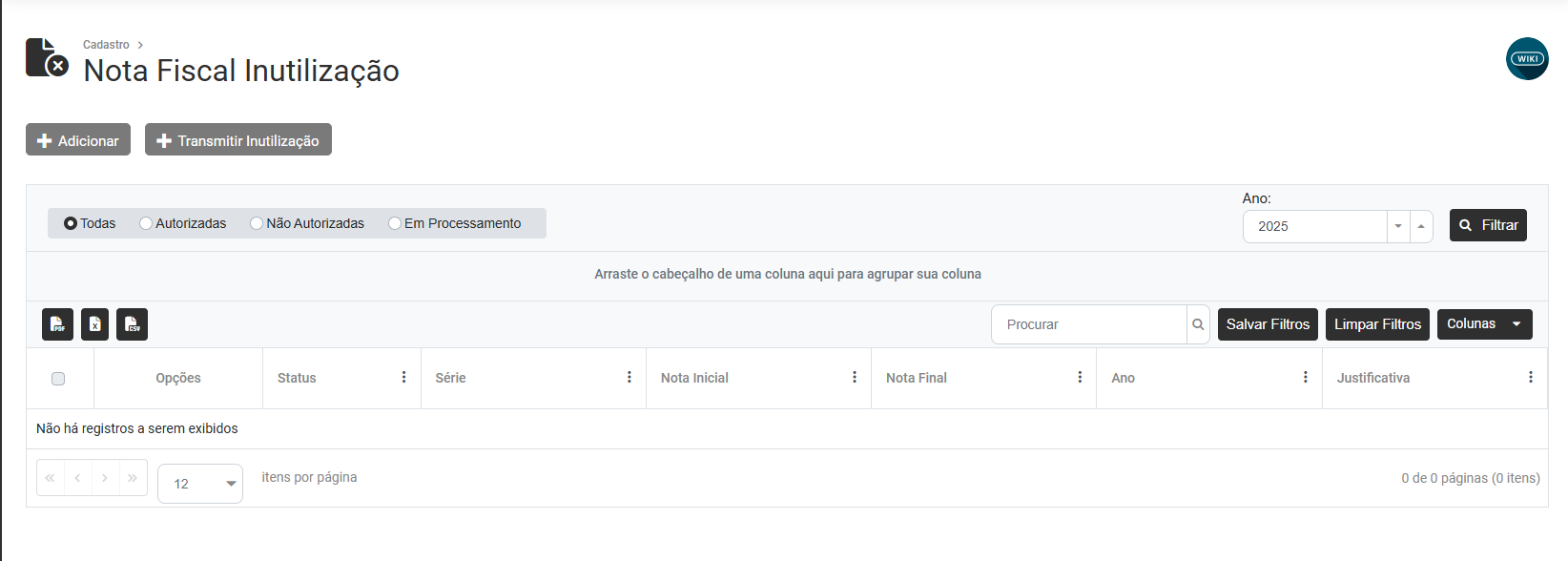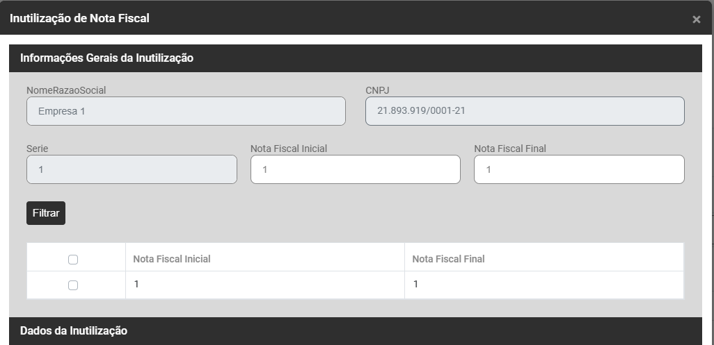 Cadastro da Inutilização da NFe (Nota Fiscal Eletrônica)