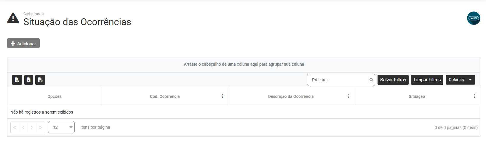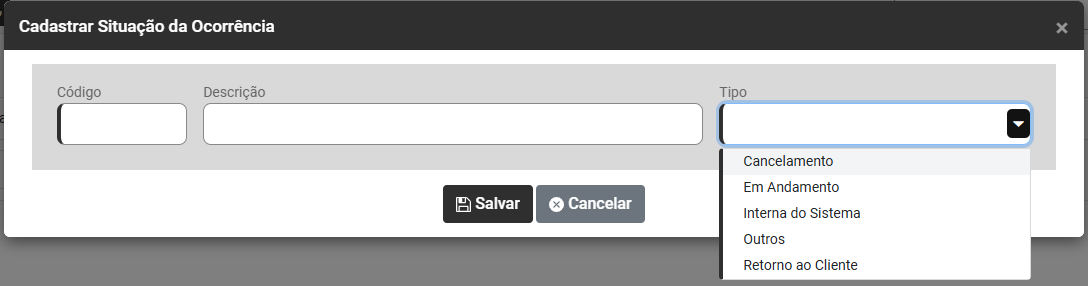 Cadastro das Situações de Ocorrências