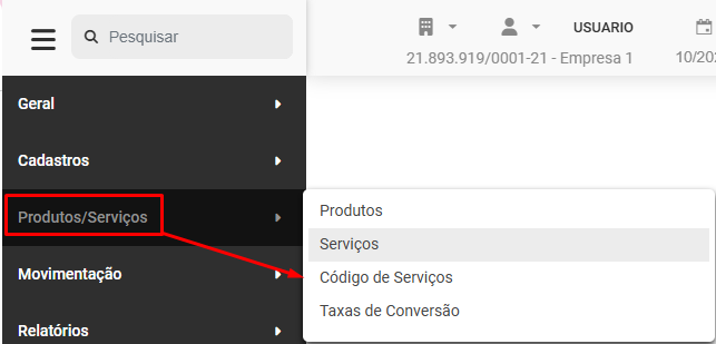 Para cadastrar os Serviços da Empresa acesse o menu Produtos/Serviços>Código de Serviço
