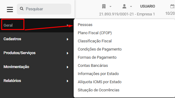 Para realizar o Cadastro de Pessoas, acesse o menu Geral>Pessoas