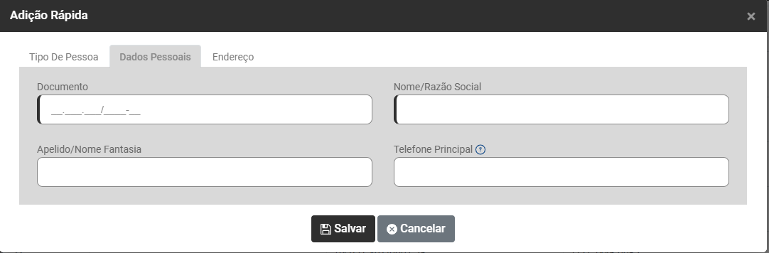 Você deverá definir as Informações Gerais da Pessoa e o Endereço da mesma