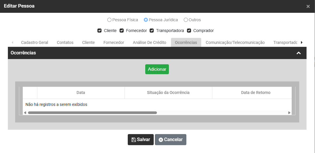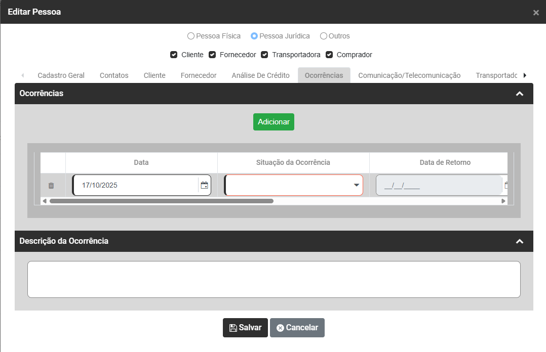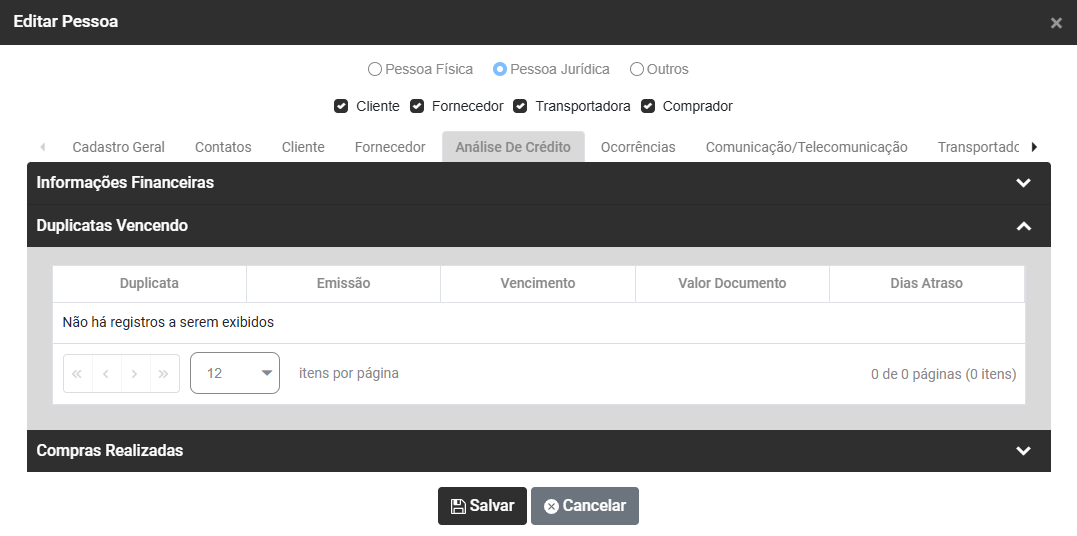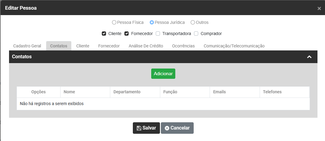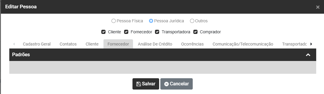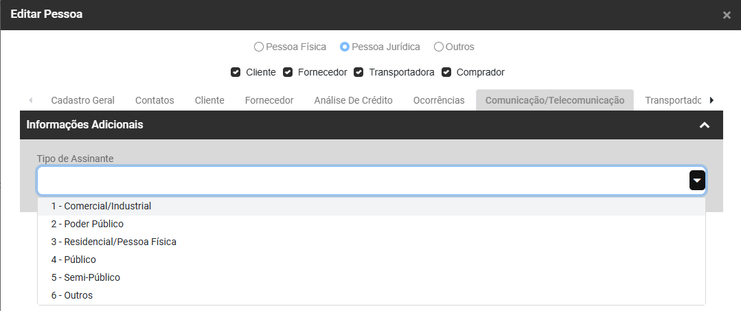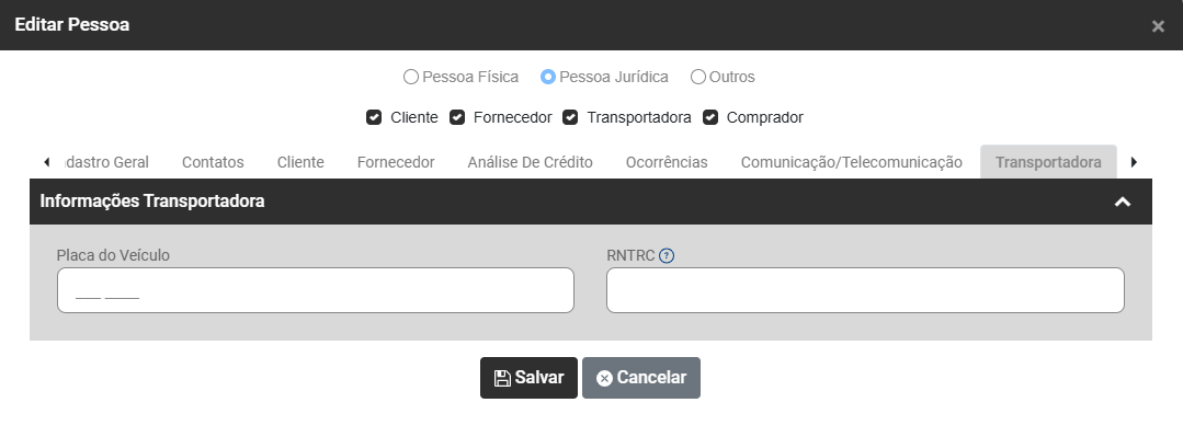a.2) Cliente, Fornecedor, Transportadora, Comprador ou Motorista - Você conseguirá definir mais do que um tipo de Pessoa