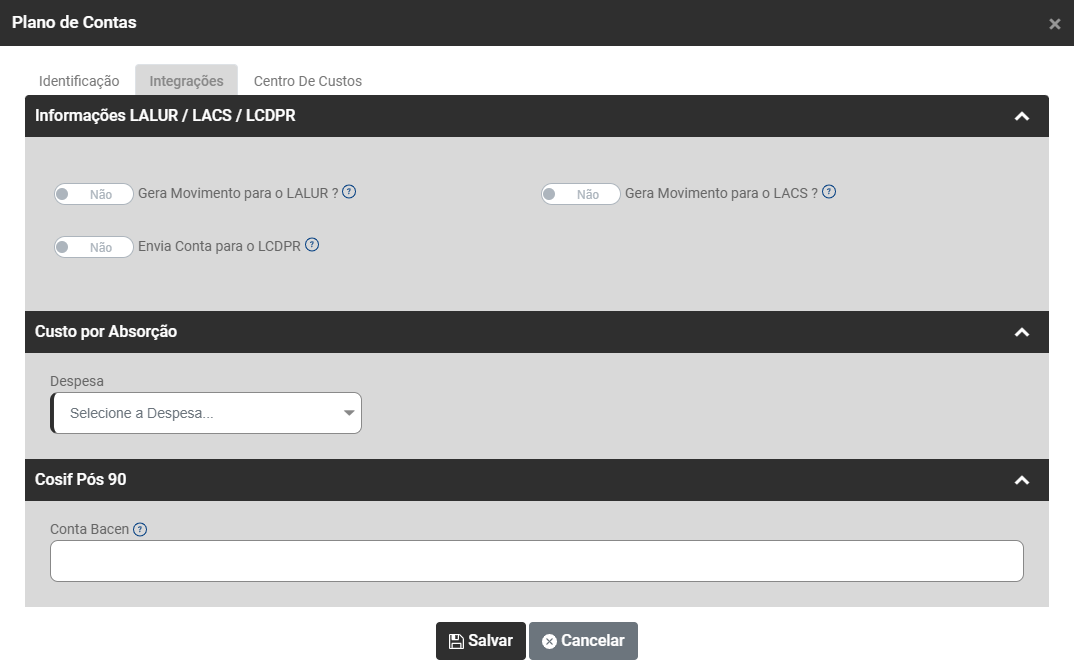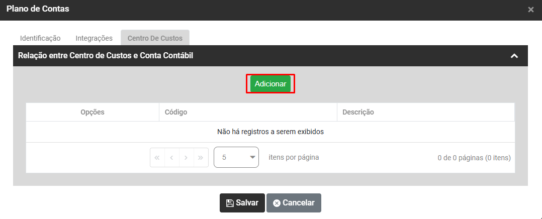 - Data Final - se essa data for definida, não será possível a utilização de Centro de Custo após a mesma