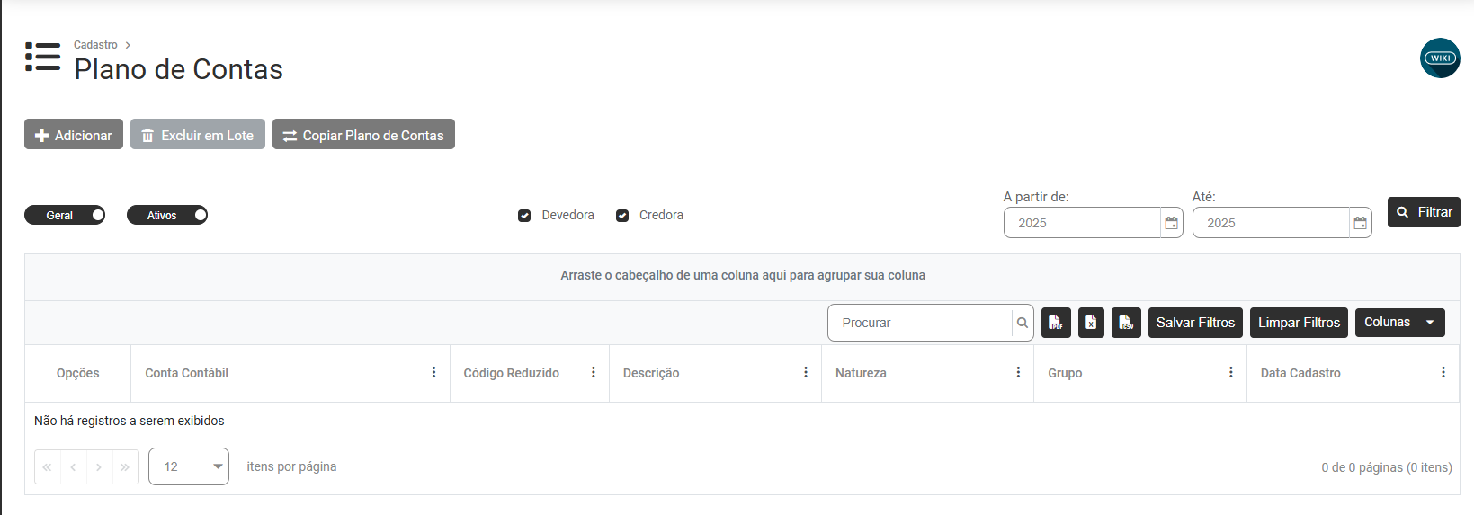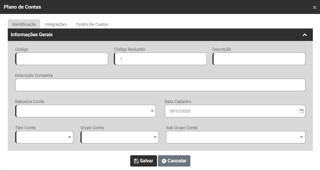 - Data de Cadastro - Não será possível a utilização desta Conta Contábil antes da data definida neste campo