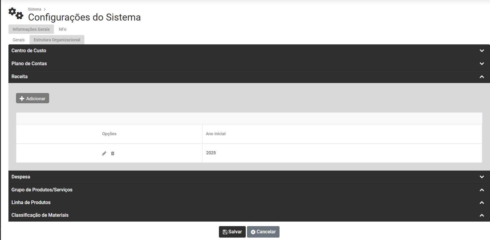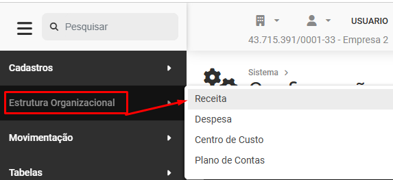 Em seguida acesse Estrutura Organizacional>Receita