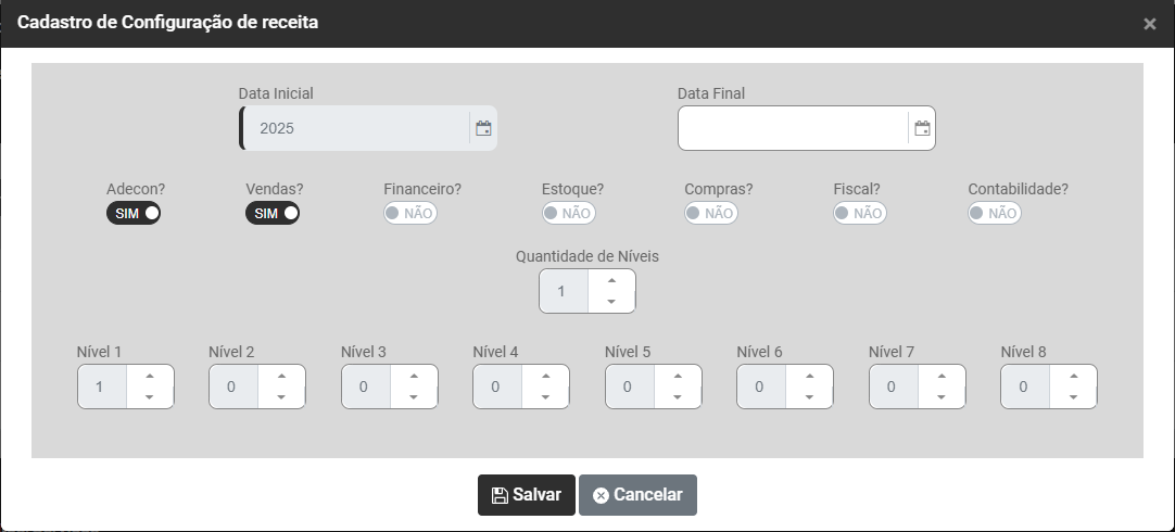 - Quantidade de Níveis da Receita