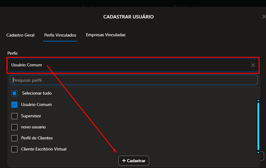 - Vincular Usuário a um Perfil