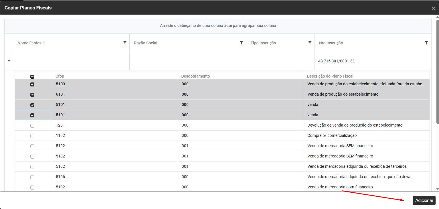 Depois que você definir os CFOPs clique no botão Adicionar