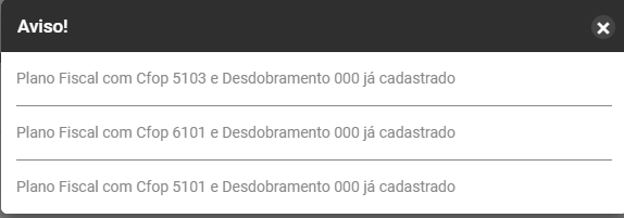 Caso você tenha algum CFOP já cadastrado para essa empresa o Sistema apresentará o Aviso com esta informação, caso contrário o CFOP será cadastrado para a empresa definida