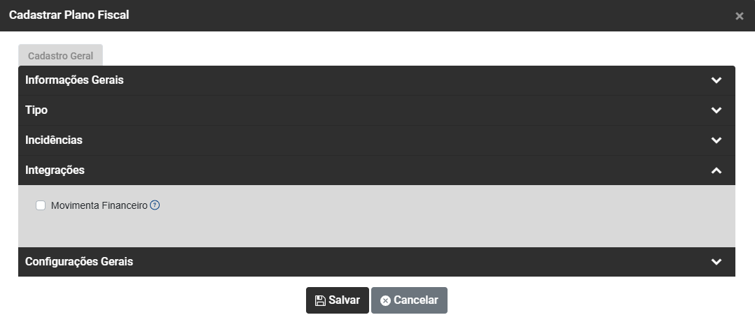 Informe se o CFOP que está sendo cadastrado será integrado com o Sistema Financeiro - Quando definido, o documento que for cadastrado utilizando esse CFOP irá gerar movimentação no Sistema Financeiro