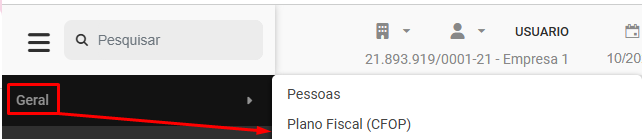 Para que você possa cadastrar os CFOPs (Código Fiscal de Operações) que serão utilizados pela empresa, acesse o menu Geral>Plano Fiscal (CFOP)