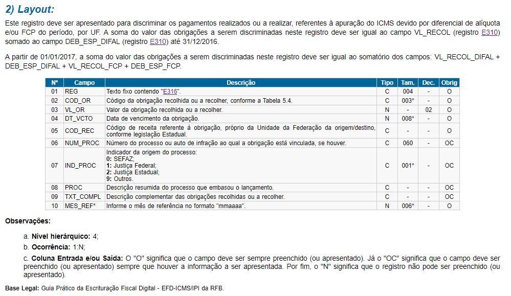 Bloco/ Registro: E316