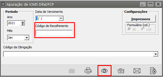 Realize o preenchimento do campo 'Código de Recolhimento' (além de preencher o restante dos campos na tela), e clique para visualizar.